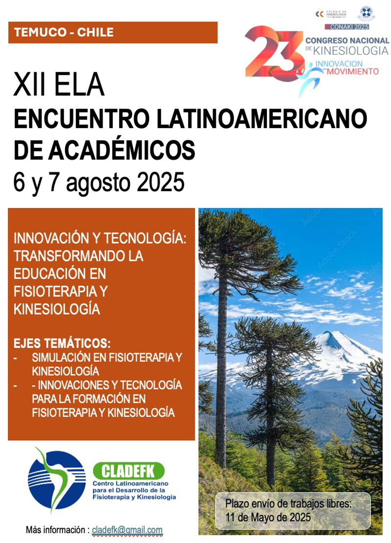 (CLADEFK) les extiende una cordial invitación a participar en el XII Encuentro de Académicos en Fisioterapia y Kinesiología (XII ELA).